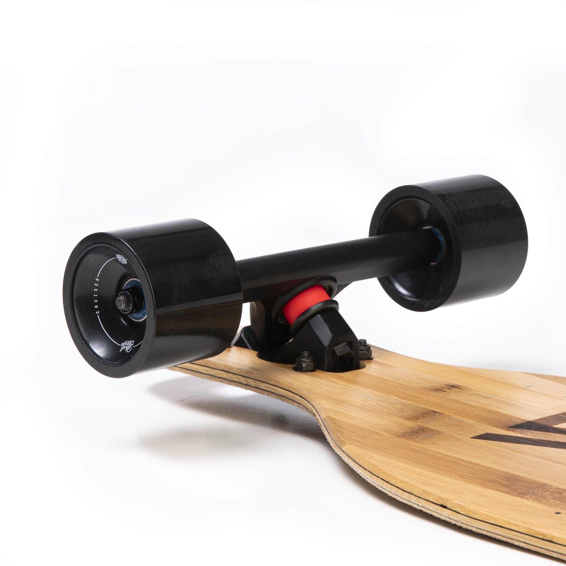 A decks flexibility has a huge impact on a boards performance while cruising and carving. The right amount of flex gives you a ride that feels lively and responsive, allowing you to maintain speed with effort.
